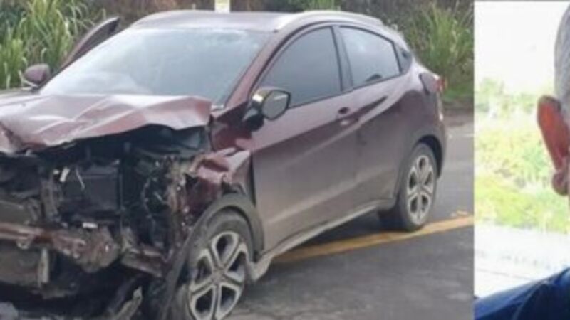 O motorista perdeu o controle do veículo e bateu em um caminhão estacionado.