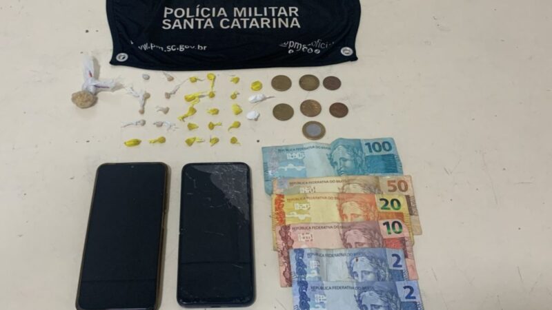 A Polícia Militar realiza buscas na região para localizar suspeitos.