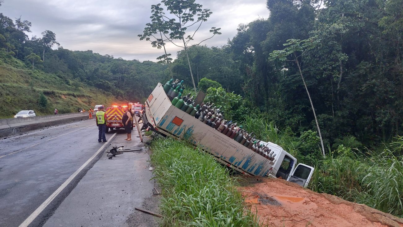 Já o motorista do caminhão Volvo, um homem de 42 anos, foi encontrado andando pela cena, com sinais vitais estáveis, mas apresentava ferimentos lacerantes na perna esquerda e no rosto, além de suspeita de fraturas fechadas no braço esquerdo.