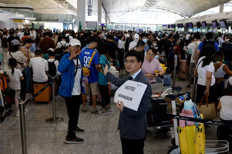 A Autoridade Aeroportuária de Hong Kong disse que as companhias aéreas também mudaram o procedimento de check-in para manual e que voos não foram afetados.