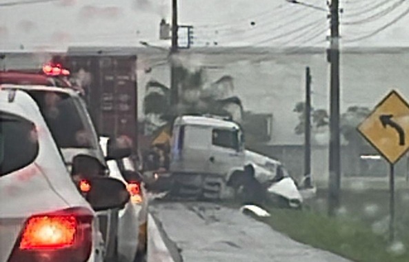 Na manhã desta sexta-feira (3), por volta das 8h15, uma grave colisão entre um automóvel Corsa e uma carreta foi registrada no km 83 da SC-110, em Jaraguá do Sul.