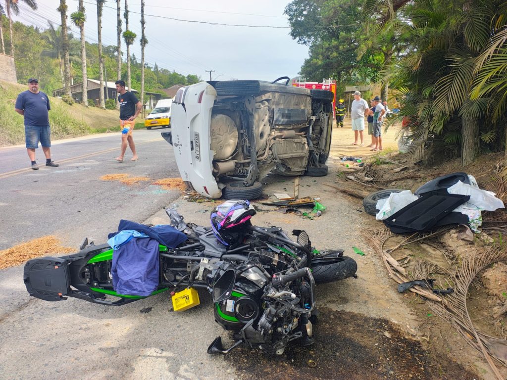 GUARAMIRIM, SC – Uma grave colisão entre um carro e uma motocicleta na manhã desta sexta-feira (12), na SC-108, no bairro Barro Branco, em Guaramirim, resultou na morte de duas pessoas. O motorista do carro, Iago Coelho, de 30 anos, e o motociclista, Mauricio Boneti, de 23 anos, não resistiram aos ferimentos e faleceram no local.