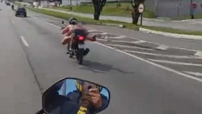 Uma tentativa de dar showzinho na BR-101, em Balneário Camboriú, não terminou bem para um motociclista. O jovem de 19 anos fazia manobras perigosas no meio da rodovia quando foi flagrado pela Polícia Rodoviária Federal (PRF) e teve que voltar para casa a pé.