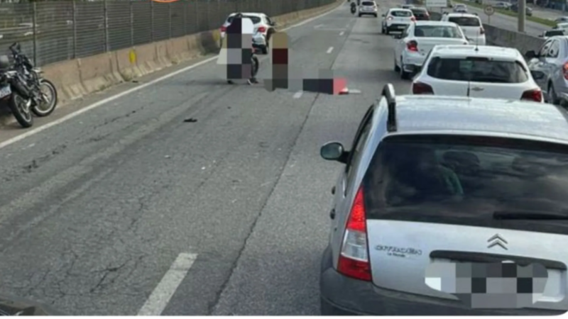 Um acidente entre carro e moto deixou o trânsito lento na BR-282, Palhoça, sentido norte, na manhã desta quinta-feira (19), sobre o viaduto do Caminho Novo.