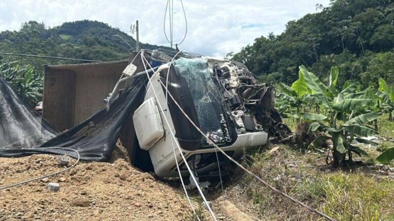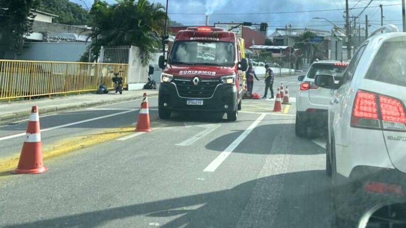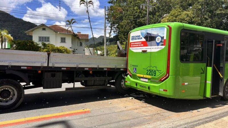 Um caminhão bateu na lateral de um ônibus do transporte coletivo de Jaraguá do Sul, na manhã desta quarta-feira, 25, por volta das 11h50, na Rua Walter Marquardt, Barra do Rio Molha, em frente ao Parque Municipal de Eventos. Ninguém ficou ferido, mas o ultimo banco de passageiros do lado esquerdo do ônibus chegou a ser arrancado. O ônibus havia parado para embarque de passageiros no ponto que fica em frente ao Parque de Eventos. Como não há espaço de recuo, o coletivo estava parado sobre a ciclofaixa e, parcialmente, sobre a pista. O caminhão foi passar, mas enroscou na lateral, causando danos aos dois veículos.