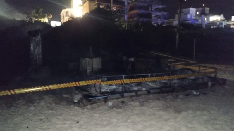 Um quiosque ficou destruído após pegar fogo na Praia Grande, em Governador Celso Ramos, na Grande Florianópolis, no fim da tarde de sábado (7). Ninguém ficou ferido.