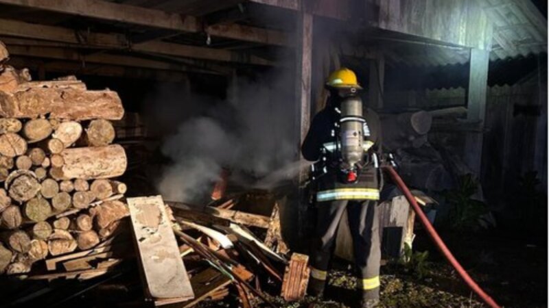 Um princípio de incêndio foi registrado por volta das 23h40 de quarta-feira (11) em um galpão localizado na Estrada Geral Duas Mamas, no bairro Duas Mamas, em Schroeder.