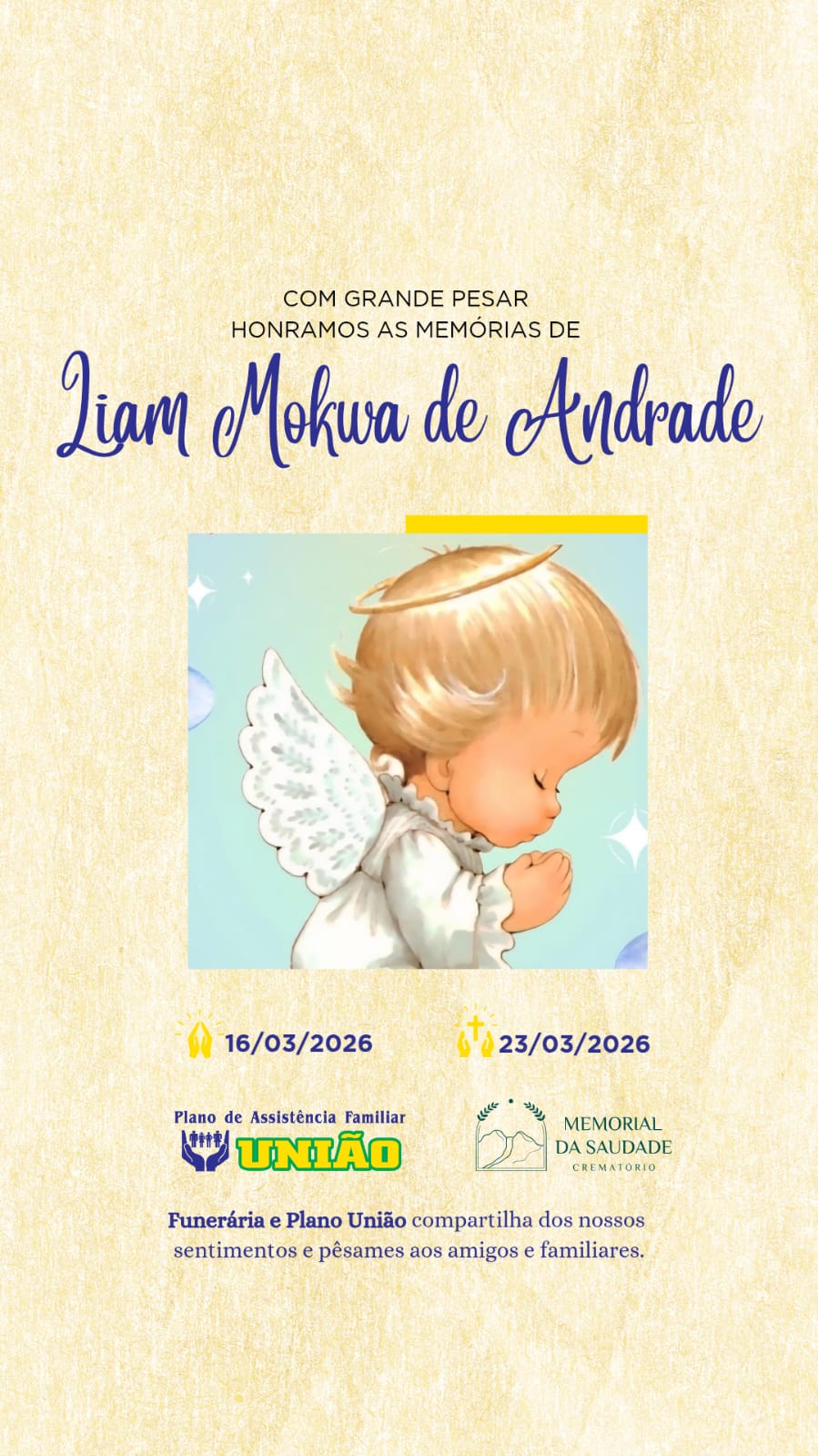 Faleceu nesta segunda-feira em Blumenau, o recém nascido LIAM MOKWA DE ANDRADE 7 dias de vida.