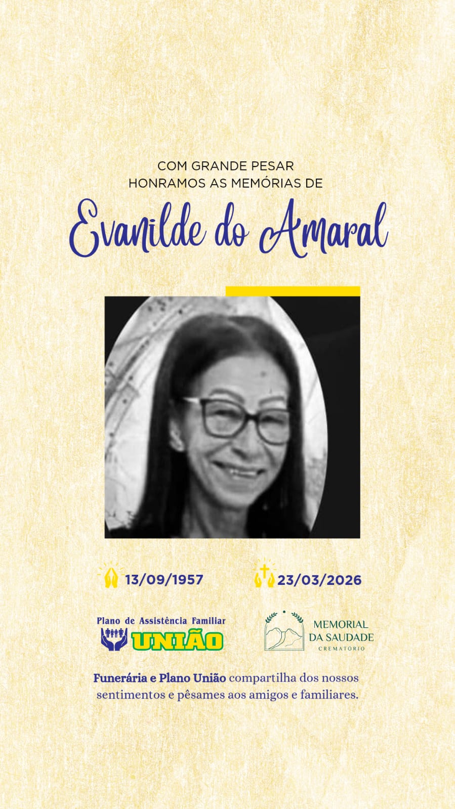 Faleceu nesta segunda-feira 23/03 a Sra. EVANILDE DO AMARAL com 68 anos de idade