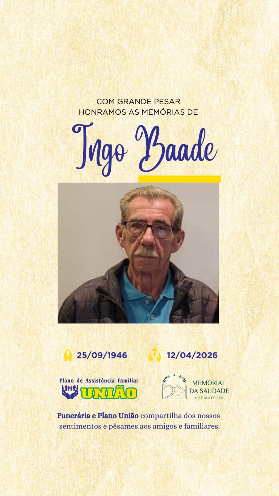 Faleceu neste domingo 12/04 o Sr. INGO BAADE com 79 anos de idade