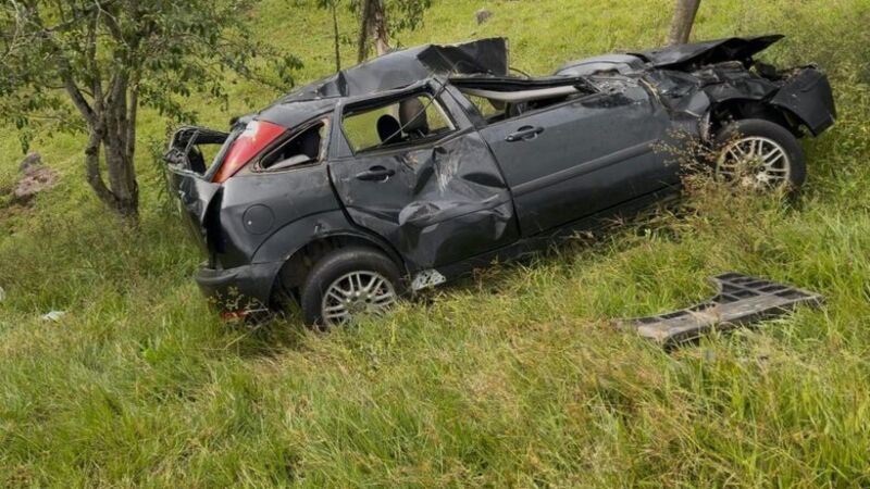 Na tentativa de retornar à via, ele perdeu o controle da direção, e o automóvel capotou por cerca de 200 metros. A passageira conseguiu saltar do veículo em movimento aproximadamente 100 metros após o início dos capotamentos.