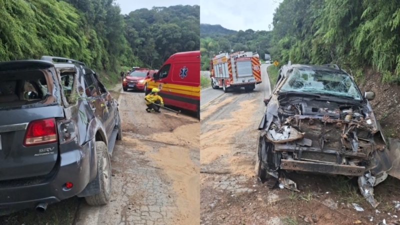 Um motorista foi encaminhado ao hospital após capotar uma caminhonete Toyota Hilux na rodovia Deputado Gentil Battisti Archer (SC-108), no bairro Zantão, em Brusque.