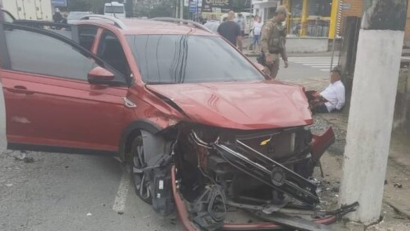 Em fuga, motorista bate carro em veículo de autoescola e poste em Schroeder
