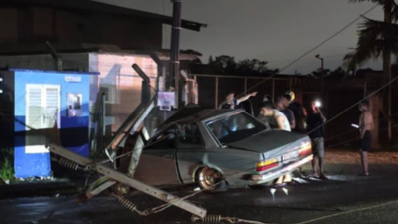 Motorista é resgatado após colisão com poste no bairro Rau, em Jaraguá do Sul