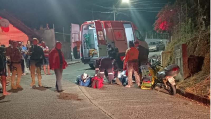 Motocilista de 48 anos se fere com gravidade em acidente no interior de Guaramirim