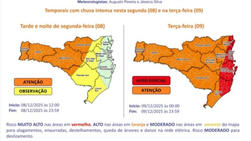 Governo de SC suspende aulas na rede estadual diante de alerta de ciclone