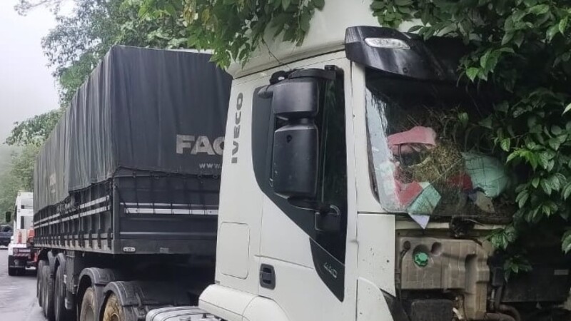 Carreta sai da pista na BR-280 em Corupá