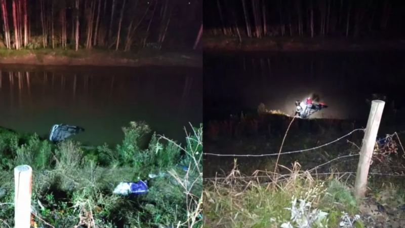 Três pessoas ficam feridas após carro sair da pista e cair em rio