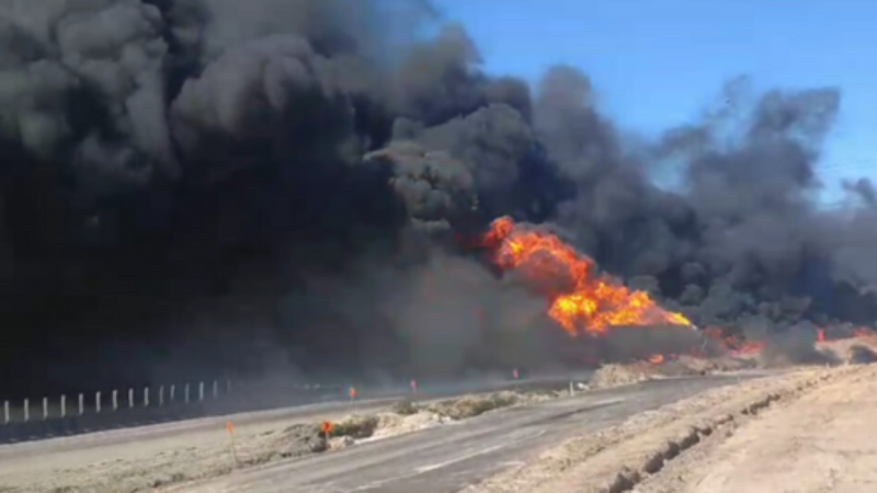 Caminhão com combustível pega fogo após colisão com carreta na BR-101, em SC