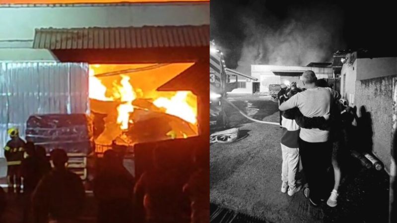 “Chocados e entristecidos”: Grande incêndio destrói fábrica de móveis em São Bento do Sul