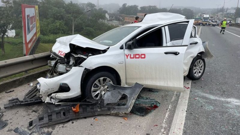“Fez um sanduíche”: acidente com engavetamento de quatro veículos interdita BR-101 em Joinville