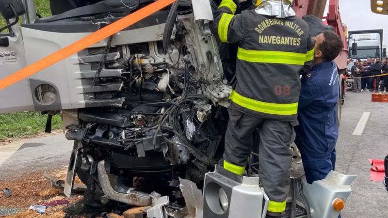 Homem fica preso às ferragens após acidente com caminhão em Balneário Piçarras