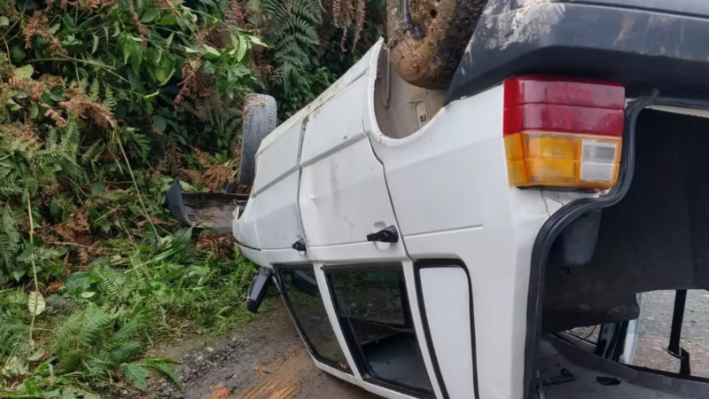 Grave acidente Mulher fica ferida após carro cair de barranco em Rio do Sul
