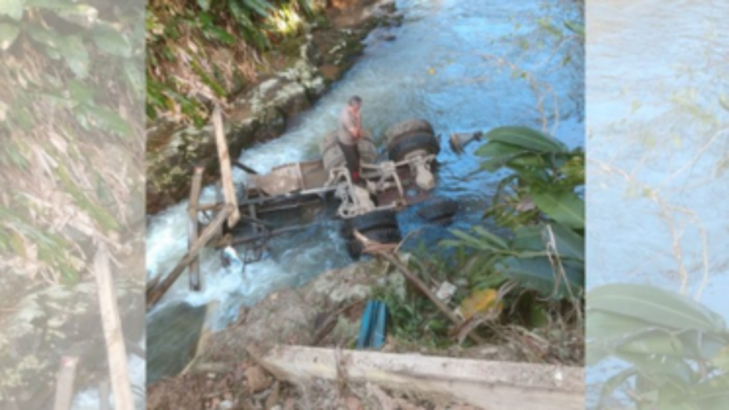 Ponte desaba e caminhão vai parar dentro de rio em São Bento do Sul