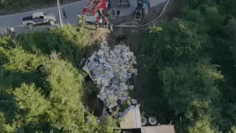Caminhão carregado de ração cai em ribanceira e dois morrem em SC