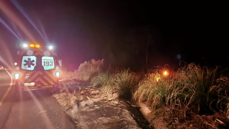 Veículo sai da pista e cai em buraco de 2 metros após condutor perder o controle