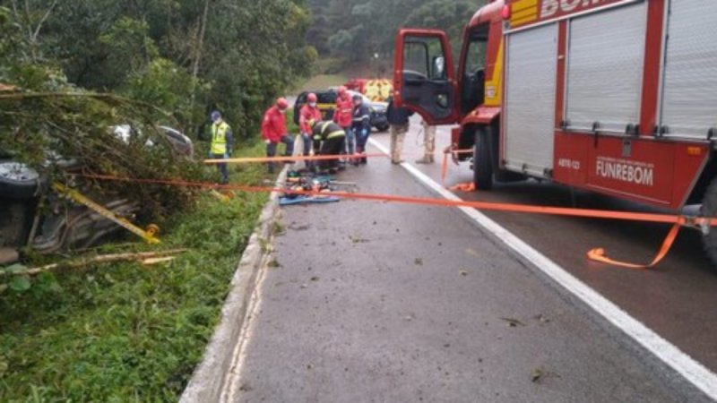 Capotamento de carro na SC 418 deixa condutor ferido