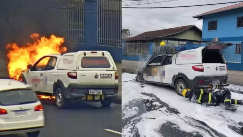 Carro com GNV é destruído por incêndio na rua Bahia, em Blumenau