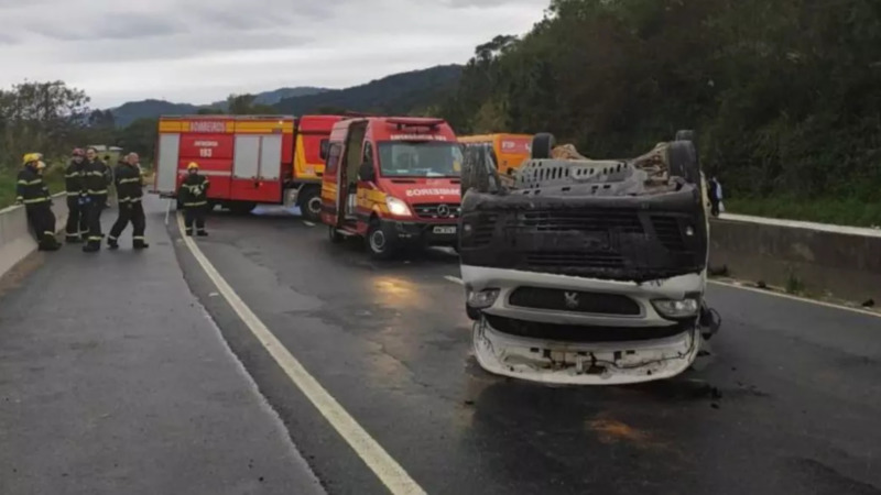 Acidente entre três carros na BR-470 em Gaspar mobiliza o Corpo de Bombeiros