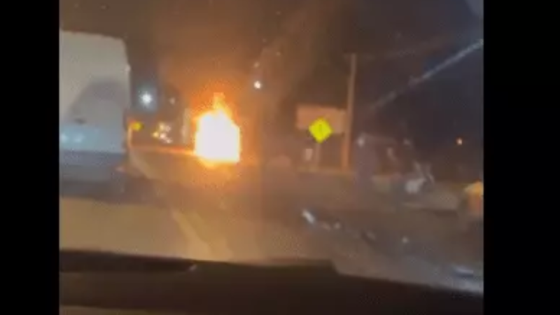 Colisão entre carro e caminhão deixa veículo em chamas na SC-283, em Concórdia