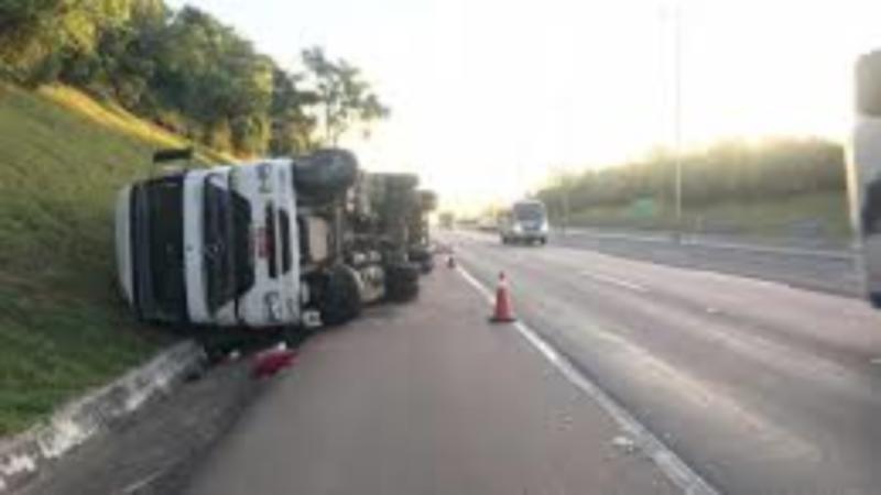 Homem fica ferido após caminhão tombar em Vargem Bonita