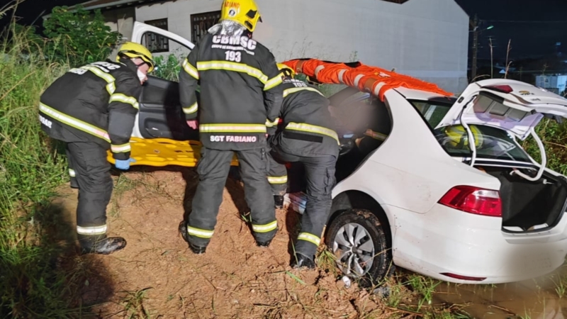 Motorista fica encarcerado em carro após acidente em Gaspar
