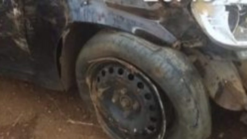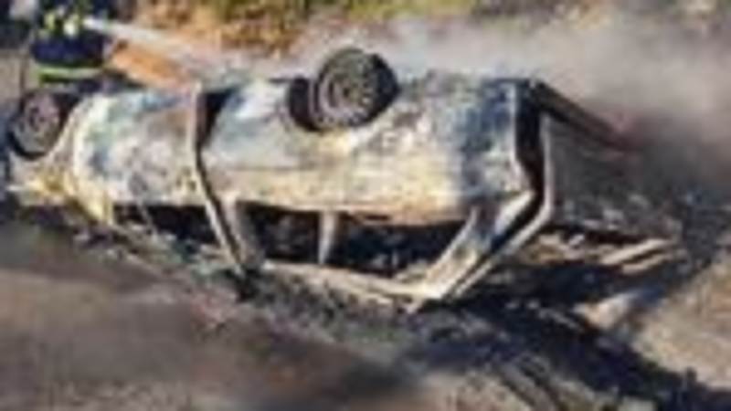 Carro capota, cai de ribanceira de cinco metros e pega fogo no Alto Vale