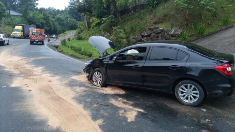 Motorista é encaminhada ao hospital após saída de pista e colisão contra muro na SC-110