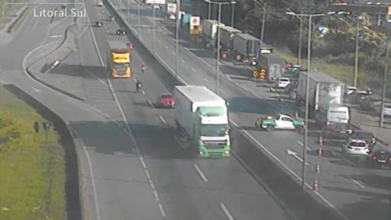 Acidente com 3 carretas interdita BR-101 em Joinville; veja como está o trânsito
