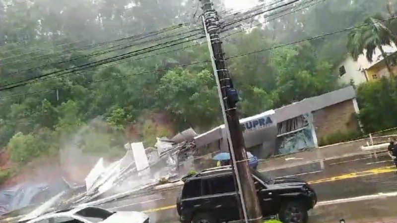 Vídeo: Deslizamento destrói revenda de veículos em SC