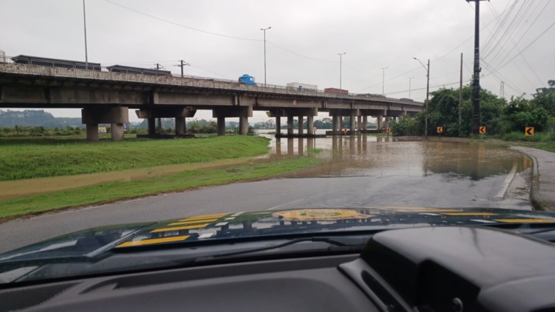 Trecho da BR-101 é interditado após alagamento em Itajaí