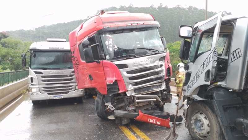 Acidente entre carros e caminhões interdita ponte na BR-470 em Ibirama