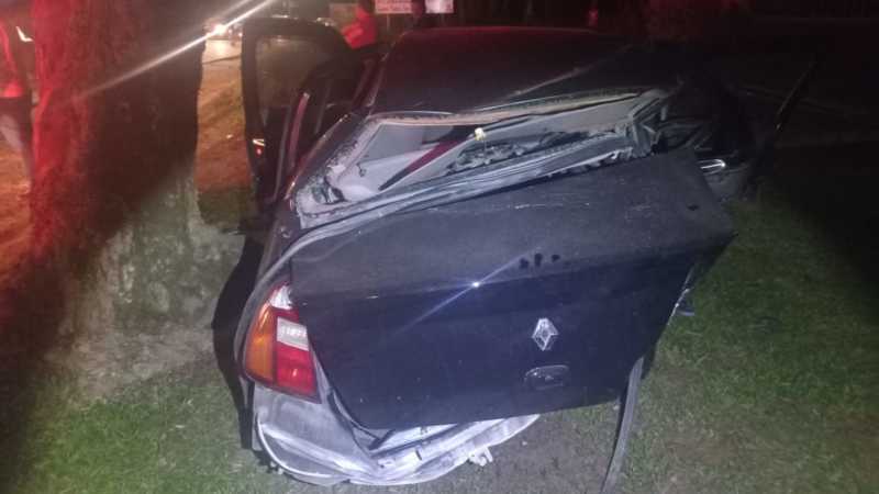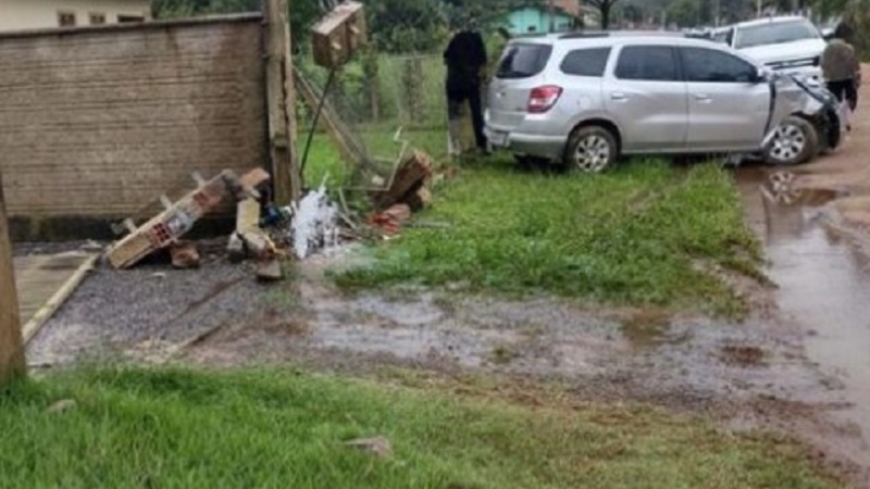 Carro bate em muro em Corupá