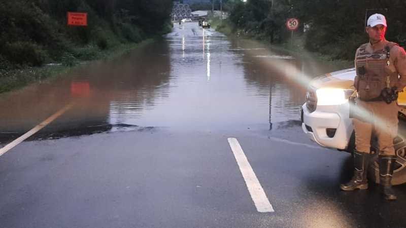 Alagamento impede o trânsito de veículos na SC-108, em Blumenau