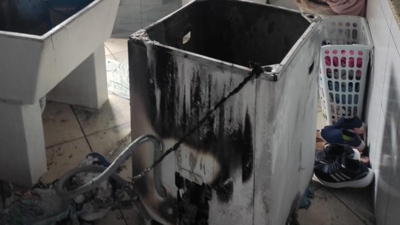 Máquina de lavar pega fogo em apartamento em Jaraguá do sul