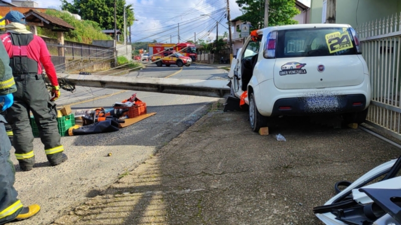 Motorista é hospitalizado após carro derrubar poste