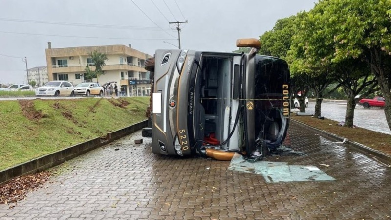 Ônibus com passageiros de Santa Catarina tomba no RS e deixa mais de 30 feridos