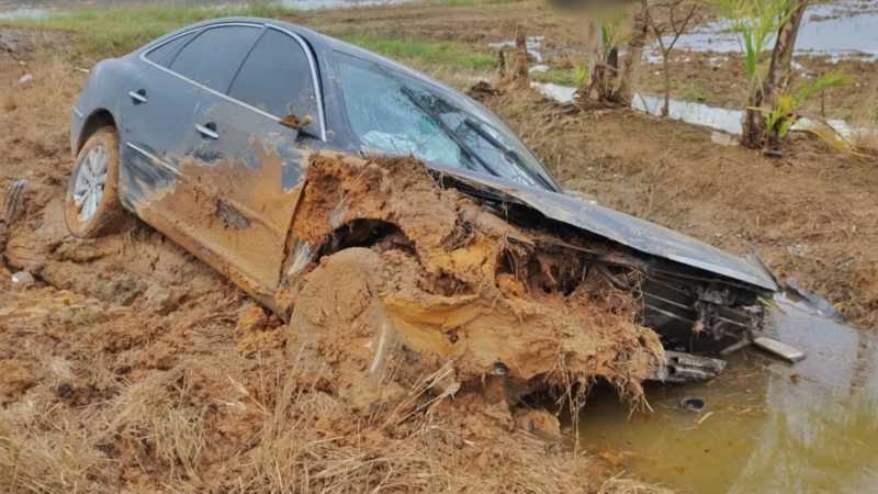 Carro sai da pista na Rodovia do Arroz, no limite entre Guaramirim e Joinville