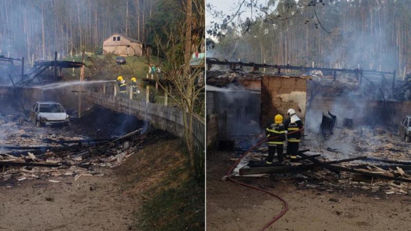 casa, carro e rancho são destruídos por incêndio em Ilhota