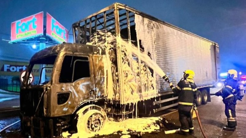 Caminhão pega fogo na BR-101, em Balneário Camboriú